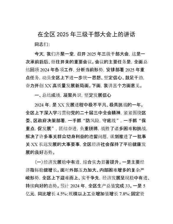 在全区2025年三级干部大会上的讲话 2025-03-07 Word模板 49 购买前,请一定要先点击这里看看,欢迎持续关注,精彩模板每天推送 预览结束,本文件为word文档,一共11页,共5067字,请购买后,下载后查看 购买前,请一定要先点击这里看看,欢迎持续关注,精彩模板每天推送 资源下载下载价格29 RMBVIP免费升级VIP点击检测网盘有效后购买有任何充值和下载问题请加微信:xuexixuexi66 0 演讲发言