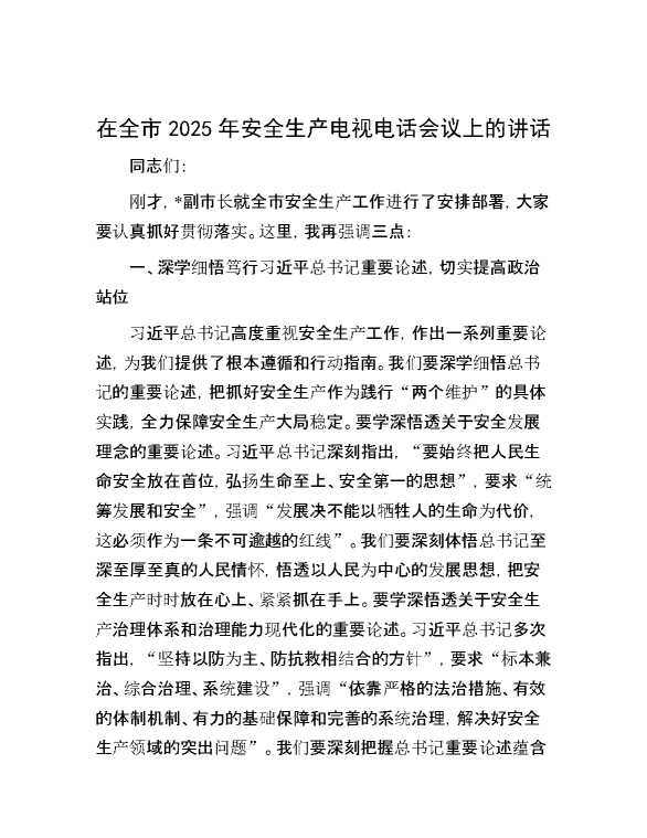 在全市2025年安全生产电视电话会议上的讲话 2025-03-07 Word模板 49 购买前,请一定要先点击这里看看,欢迎持续关注,精彩模板每天推送 预览结束,本文件为word文档,一共4页,共1834字,请购买后,下载后查看 购买前,请一定要先点击这里看看,欢迎持续关注,精彩模板每天推送 资源下载下载价格29 RMBVIP免费升级VIP点击检测网盘有效后购买有任何充值和下载问题请加微信:xuexixuexi66 0 演讲发言