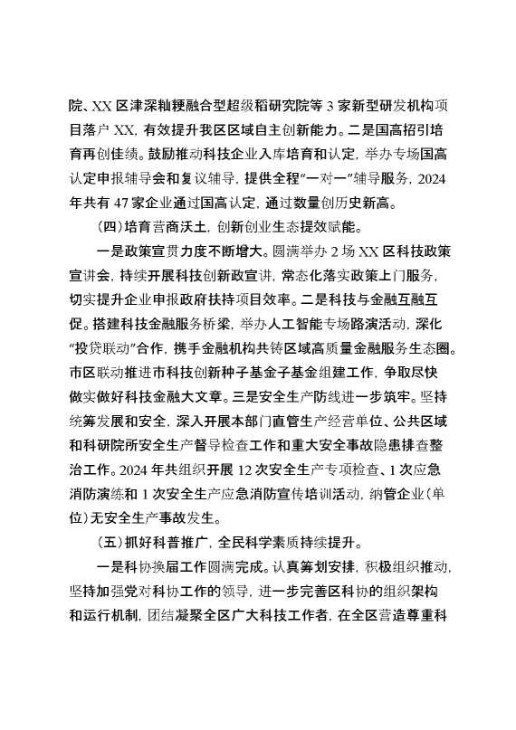 区科技创新局2024年工作总结及2025年工作计划 2025-03-18 Word模板 97 购买前,请一定要先点击这里看看,欢迎持续关注,精彩模板每天推送 预览结束,本文件为word文档,一共8页,共4061字,请购买后,下载后查看 购买前,请一定要先点击这里看看,欢迎持续关注,精彩模板每天推送 资源下载下载价格29 RMBVIP免费升级VIP点击检测网盘有效后购买有任何充值和下载问题请加微信:xuexixuexi66 0 总结汇报