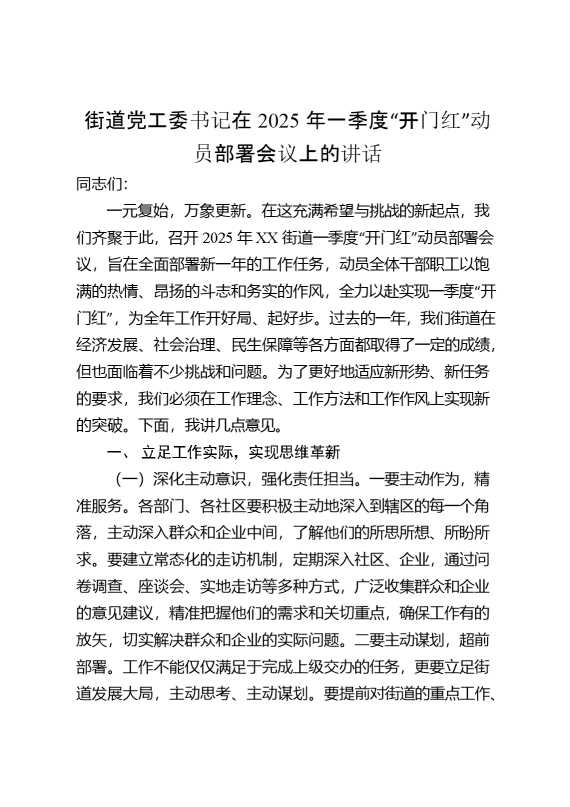 街道党工委书记在2025年一季度“开门红”动员部署会议上的讲话 2025-03-18 Word模板 63 购买前,请一定要先点击这里看看,欢迎持续关注,精彩模板每天推送 预览结束,本文件为word文档,一共10页,共4702字,请购买后,下载后查看 购买前,请一定要先点击这里看看,欢迎持续关注,精彩模板每天推送 资源下载下载价格29 RMBVIP免费升级VIP点击检测网盘有效后购买有任何充值和下载问题请加微信:xuexixuexi66 0 演讲发言