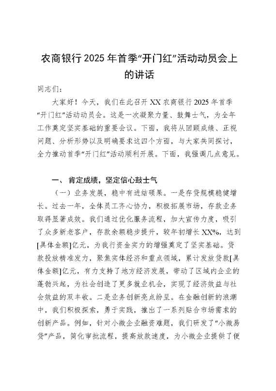 农商银行2025年首季“开门红”活动动员会上的讲话 2025-03-18 Word模板 65 购买前,请一定要先点击这里看看,欢迎持续关注,精彩模板每天推送 预览结束,本文件为word文档,一共13页,共6402字,请购买后,下载后查看 购买前,请一定要先点击这里看看,欢迎持续关注,精彩模板每天推送 资源下载下载价格29 RMBVIP免费升级VIP点击检测网盘有效后购买有任何充值和下载问题请加微信:xuexixuexi66 0 演讲发言