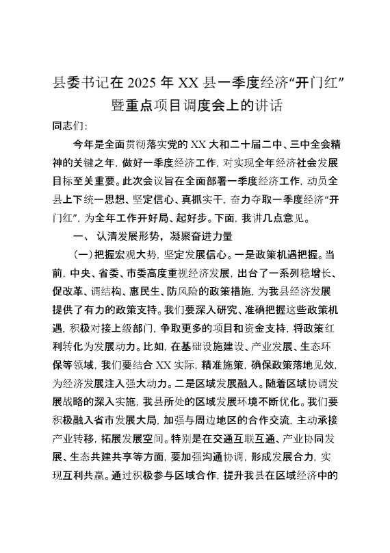 县委书记在2025年某某县一季度经济“开门红”暨重点项目调度会上的讲话 2025-04-07 Word模板 64 购买前,请一定要先点击这里看看,欢迎持续关注,精彩模板每天推送 预览结束,本文件为word文档,一共9页,共4547字,请购买后,下载后查看 购买前,请一定要先点击这里看看,欢迎持续关注,精彩模板每天推送 资源下载下载价格29 RMBVIP免费升级VIP点击检测网盘有效后购买有任何充值和下载问题请加微信:xuexixuexi66 0 演讲发言