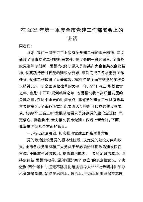 在2025年第一季度全市党建工作部署会上的讲话 2025-04-07 Word模板 65 购买前,请一定要先点击这里看看,欢迎持续关注,精彩模板每天推送 预览结束,本文件为word文档,一共5页,共2467字,请购买后,下载后查看 购买前,请一定要先点击这里看看,欢迎持续关注,精彩模板每天推送 资源下载下载价格29 RMBVIP免费升级VIP点击检测网盘有效后购买有任何充值和下载问题请加微信:xuexixuexi66 0 演讲发言