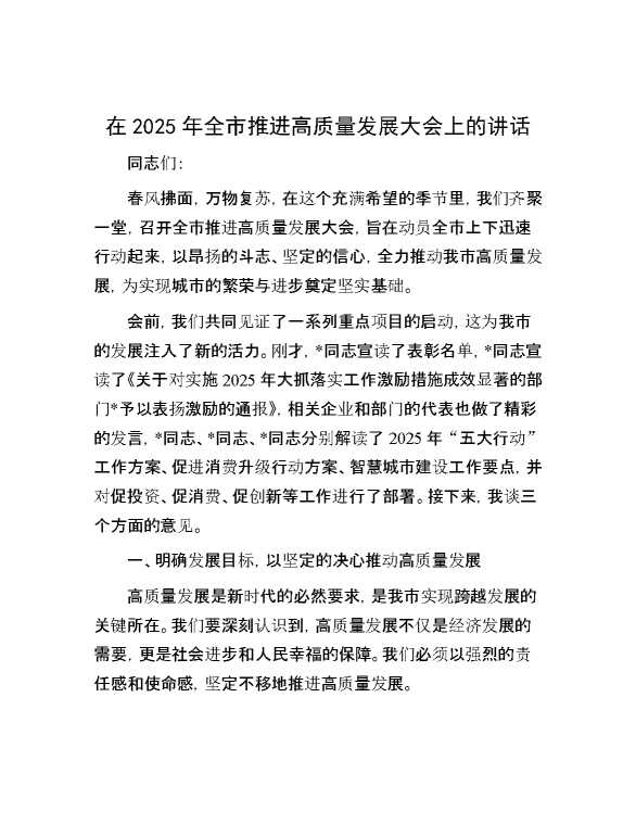 在2025年全市推进高质量发展大会上的讲话 2025-04-14 Word模板 39 购买前,请一定要先点击这里看看,欢迎持续关注,精彩模板每天推送 预览结束,本文件为word文档,一共7页,共3062字,请购买后,下载后查看 购买前,请一定要先点击这里看看,欢迎持续关注,精彩模板每天推送 资源下载下载价格29 RMBVIP免费升级VIP点击检测网盘有效后购买有任何充值和下载问题请加微信:xuexixuexi66 0 演讲发言