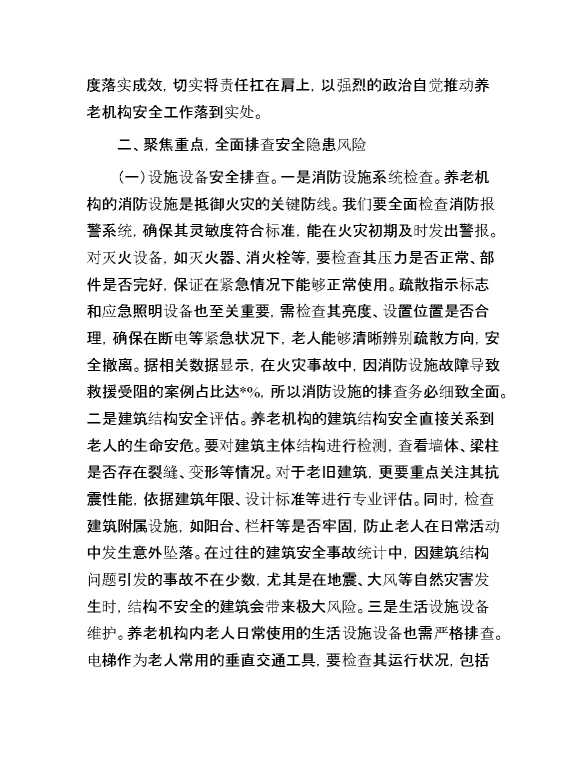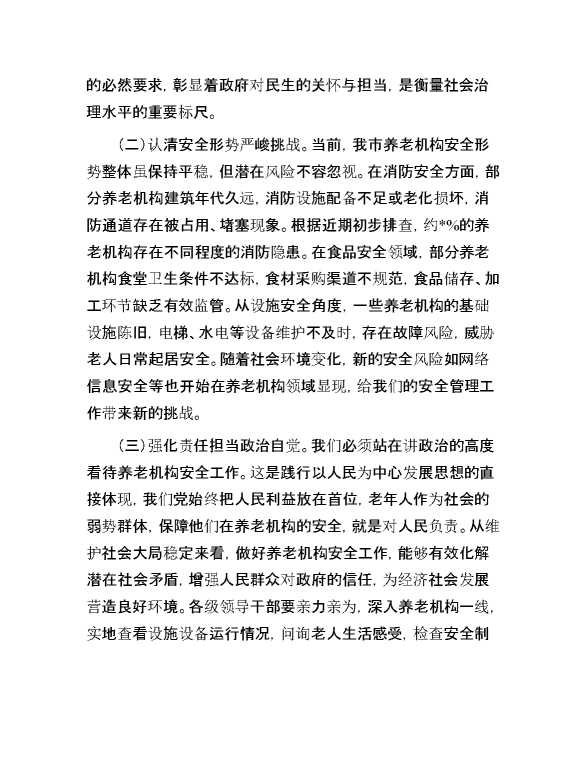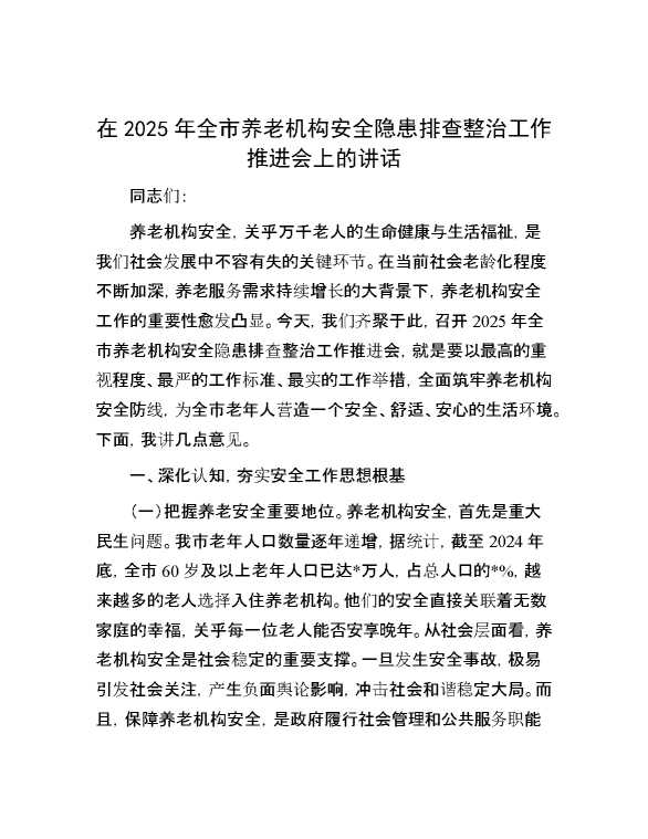 在2025年全市养老机构安全隐患排查整治工作推进会上的讲话 2025-04-14 Word模板 43 购买前,请一定要先点击这里看看,欢迎持续关注,精彩模板每天推送 预览结束,本文件为word文档,一共15页,共7405字,请购买后,下载后查看 购买前,请一定要先点击这里看看,欢迎持续关注,精彩模板每天推送 资源下载下载价格29 RMBVIP免费升级VIP点击检测网盘有效后购买有任何充值和下载问题请加微信:xuexixuexi66 0 演讲发言