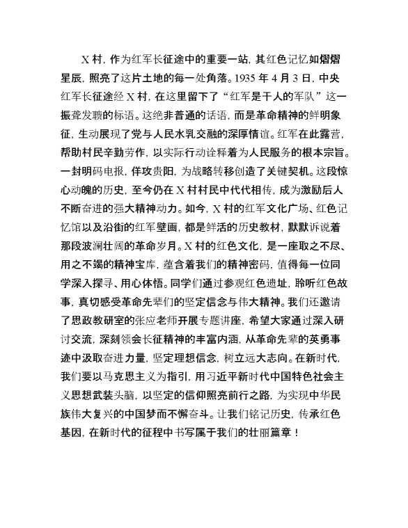 在青马工程班赴村开展研学活动时的讲话:赓续长征精神,勇担青春使命 2025-04-23 Word模板 77 购买前,请一定要先点击这里看看,欢迎持续关注,精彩模板每天推送 预览结束,本文件为word文档,一共6页,共3080字,请购买后,下载后查看 购买前,请一定要先点击这里看看,欢迎持续关注,精彩模板每天推送 资源下载下载价格29 RMBVIP免费升级VIP点击检测网盘有效后购买有任何充值和下载问题请加微信:xuexixuexi66 0 演讲发言