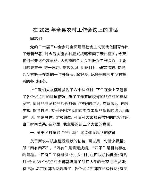 在2025年全县农村工作会议上的讲话 2025-04-23 Word模板 64 购买前,请一定要先点击这里看看,欢迎持续关注,精彩模板每天推送 预览结束,本文件为word文档,一共6页,共2914字,请购买后,下载后查看 购买前,请一定要先点击这里看看,欢迎持续关注,精彩模板每天推送 资源下载下载价格29 RMBVIP免费升级VIP点击检测网盘有效后购买有任何充值和下载问题请加微信:xuexixuexi66 0 演讲发言