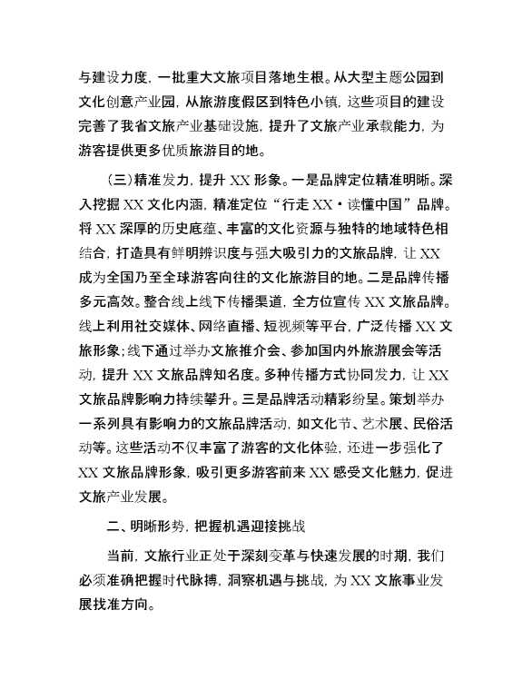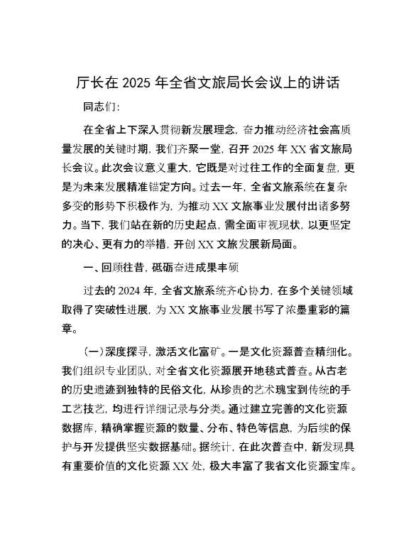 厅长在2025年全省文旅局长会议上的讲话 2025-04-23 Word模板 55 购买前,请一定要先点击这里看看,欢迎持续关注,精彩模板每天推送 预览结束,本文件为word文档,一共14页,共6972字,请购买后,下载后查看 购买前,请一定要先点击这里看看,欢迎持续关注,精彩模板每天推送 资源下载下载价格29 RMBVIP免费升级VIP点击检测网盘有效后购买有任何充值和下载问题请加微信:xuexixuexi66 0 演讲发言