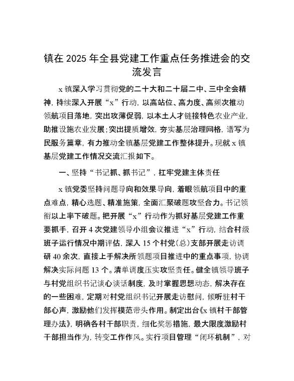 镇在2025年全县党建工作重点任务推进会的交流发言 2025-04-23 Word模板 59 购买前,请一定要先点击这里看看,欢迎持续关注,精彩模板每天推送 预览结束,本文件为word文档,一共5页,共2404字,请购买后,下载后查看 购买前,请一定要先点击这里看看,欢迎持续关注,精彩模板每天推送 资源下载下载价格29 RMBVIP免费升级VIP点击检测网盘有效后购买有任何充值和下载问题请加微信:xuexixuexi66 0 演讲发言