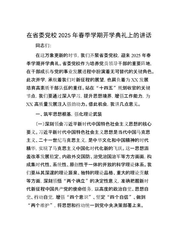 在省委党校2025年春季学期开学典礼上的讲话 2025-04-23 Word模板 49 购买前,请一定要先点击这里看看,欢迎持续关注,精彩模板每天推送 预览结束,本文件为word文档,一共8页,共3823字,请购买后,下载后查看 购买前,请一定要先点击这里看看,欢迎持续关注,精彩模板每天推送 资源下载下载价格29 RMBVIP免费升级VIP点击检测网盘有效后购买有任何充值和下载问题请加微信:xuexixuexi66 0 演讲发言