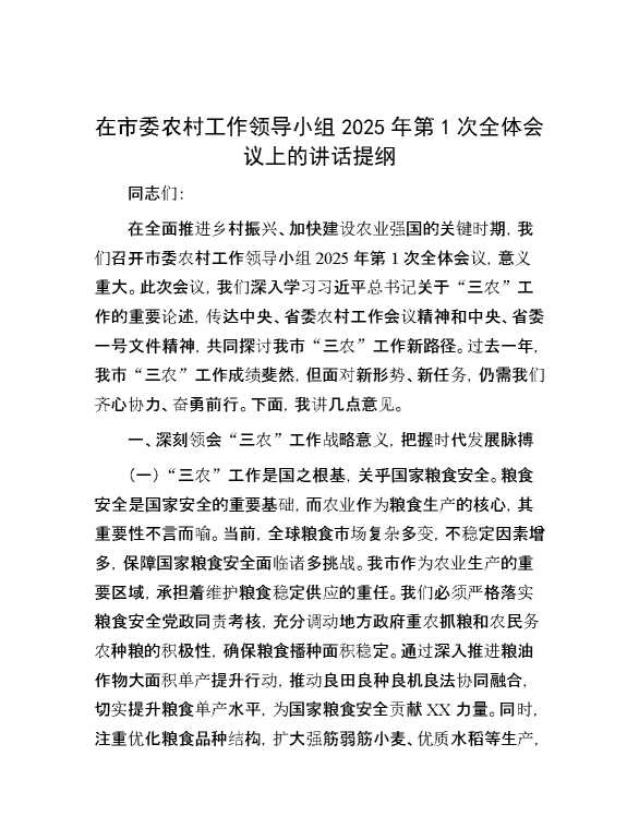 在市委农村工作领导小组2025年第1次全体会议上的讲话提纲 2025-04-23 Word模板 50 购买前,请一定要先点击这里看看,欢迎持续关注,精彩模板每天推送 预览结束,本文件为word文档,一共11页,共5493字,请购买后,下载后查看 购买前,请一定要先点击这里看看,欢迎持续关注,精彩模板每天推送 资源下载下载价格29 RMBVIP免费升级VIP点击检测网盘有效后购买有任何充值和下载问题请加微信:xuexixuexi66 0 演讲发言