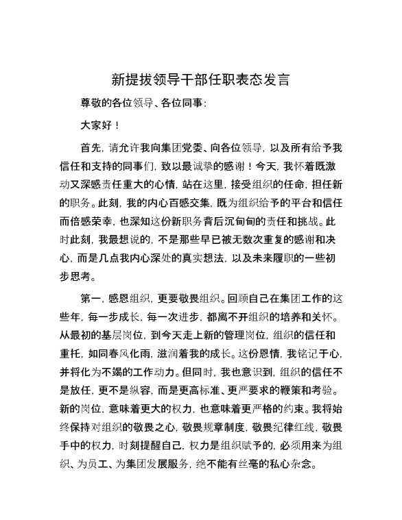 新提拔领导干部任职表态发言 2025-04-23 Word模板 63 购买前,请一定要先点击这里看看,欢迎持续关注,精彩模板每天推送 预览结束,本文件为word文档,一共3页,共1368字,请购买后,下载后查看 购买前,请一定要先点击这里看看,欢迎持续关注,精彩模板每天推送 资源下载下载价格29 RMBVIP免费升级VIP点击检测网盘有效后购买有任何充值和下载问题请加微信:xuexixuexi66 0 演讲发言