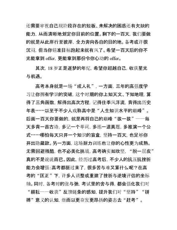在高中高三百日誓师活动上的讲话 2025-04-23 Word模板 78 购买前,请一定要先点击这里看看,欢迎持续关注,精彩模板每天推送 预览结束,本文件为word文档,一共4页,共1485字,请购买后,下载后查看 购买前,请一定要先点击这里看看,欢迎持续关注,精彩模板每天推送 资源下载下载价格29 RMBVIP免费升级VIP点击检测网盘有效后购买有任何充值和下载问题请加微信:xuexixuexi66 0 演讲发言
