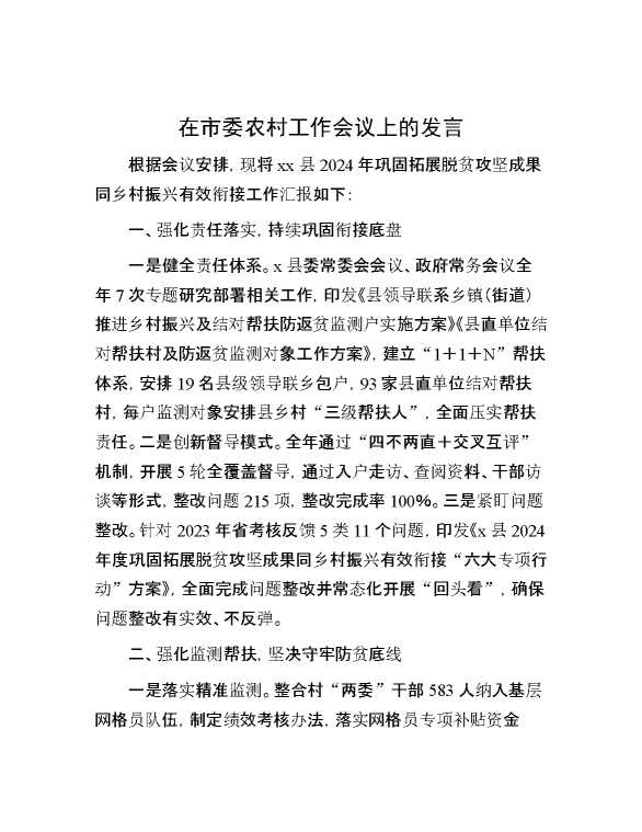 在市委农村工作会议上的发言 2025-04-24 Word模板 65 购买前,请一定要先点击这里看看,欢迎持续关注,精彩模板每天推送 预览结束,本文件为word文档,一共3页,共1304字,请购买后,下载后查看 购买前,请一定要先点击这里看看,欢迎持续关注,精彩模板每天推送 资源下载下载价格29 RMBVIP免费升级VIP点击检测网盘有效后购买有任何充值和下载问题请加微信:xuexixuexi66 0 演讲发言