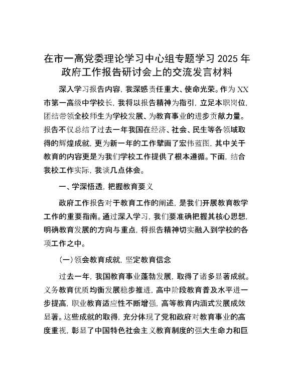 在市一高党委理论学习中心组专题学习2025年政府工作报告研讨会上的交流发言材料 2025-04-24 Word模板 84 购买前,请一定要先点击这里看看,欢迎持续关注,精彩模板每天推送 预览结束,本文件为word文档,一共17页,共8436字,请购买后,下载后查看 购买前,请一定要先点击这里看看,欢迎持续关注,精彩模板每天推送 资源下载下载价格29 RMBVIP免费升级VIP点击检测网盘有效后购买有任何充值和下载问题请加微信:xuexixuexi66 0 演讲发言