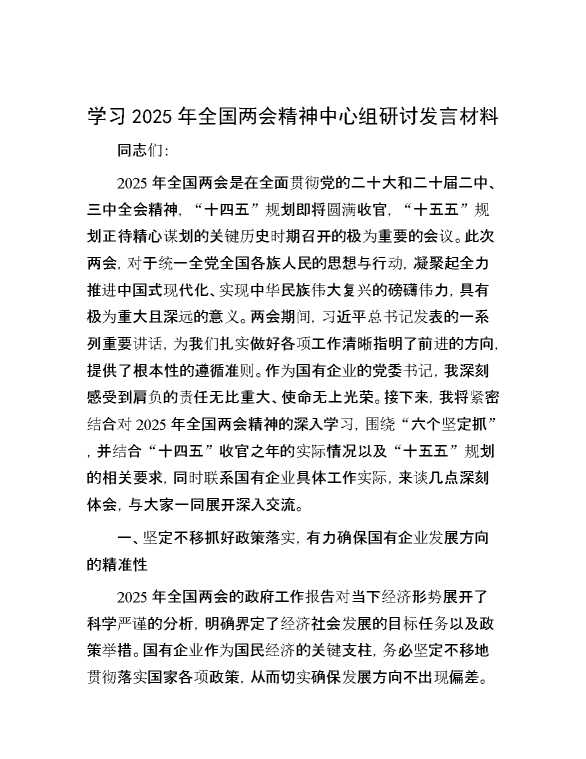 学习2025年全国两会精神中心组研讨发言材料 2025-04-24 Word模板 69 购买前,请一定要先点击这里看看,欢迎持续关注,精彩模板每天推送 预览结束,本文件为word文档,一共9页,共3953字,请购买后,下载后查看 购买前,请一定要先点击这里看看,欢迎持续关注,精彩模板每天推送 资源下载下载价格29 RMBVIP免费升级VIP点击检测网盘有效后购买有任何充值和下载问题请加微信:xuexixuexi66 0 演讲发言
