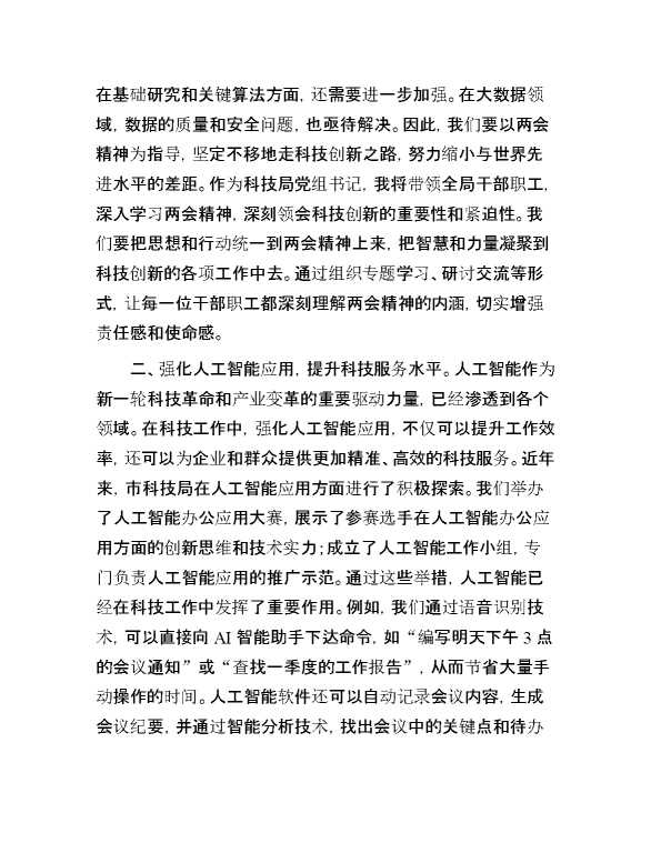 市科技局党组书记学习2025年全国两会精神研讨发言材料 2025-04-24 Word模板 73 购买前,请一定要先点击这里看看,欢迎持续关注,精彩模板每天推送 预览结束,本文件为word文档,一共5页,共2393字,请购买后,下载后查看 购买前,请一定要先点击这里看看,欢迎持续关注,精彩模板每天推送 资源下载下载价格29 RMBVIP免费升级VIP点击检测网盘有效后购买有任何充值和下载问题请加微信:xuexixuexi66 0 演讲发言