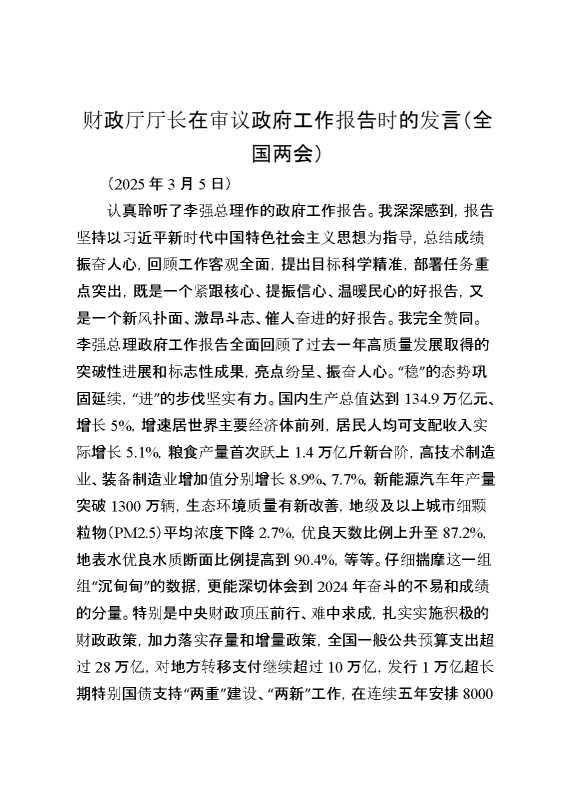 财政厅厅长在审议政府工作报告时的发言(全国两会) 2025-04-26 Word模板 56 购买前,请一定要先点击这里看看,欢迎持续关注,精彩模板每天推送 预览结束,本文件为word文档,一共4页,共1892字,请购买后,下载后查看 购买前,请一定要先点击这里看看,欢迎持续关注,精彩模板每天推送 资源下载下载价格29 RMBVIP免费升级VIP点击检测网盘有效后购买有任何充值和下载问题请加微信:xuexixuexi66 0 演讲发言