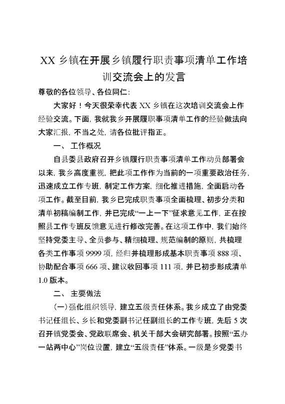 某某乡镇在开展乡镇履行职责事项清单工作培训交流会上的发言 2025-04-26 Word模板 45 购买前,请一定要先点击这里看看,欢迎持续关注,精彩模板每天推送 预览结束,本文件为word文档,一共5页,共2252字,请购买后,下载后查看 购买前,请一定要先点击这里看看,欢迎持续关注,精彩模板每天推送 资源下载下载价格29 RMBVIP免费升级VIP点击检测网盘有效后购买有任何充值和下载问题请加微信:xuexixuexi66 0 演讲发言