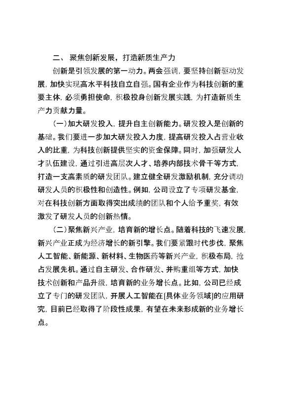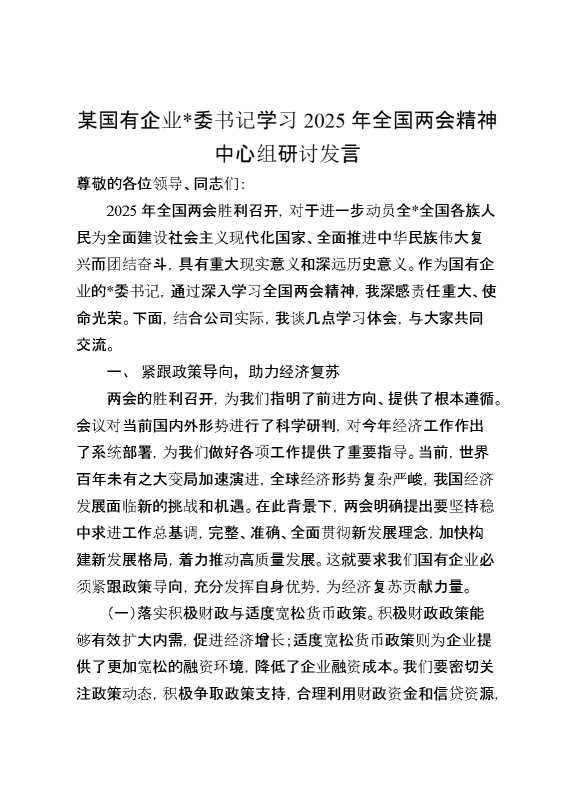 某国有企业党委书记学习2025年全国两会精神中心组研讨发言 2025-04-26 Word模板 49 购买前,请一定要先点击这里看看,欢迎持续关注,精彩模板每天推送 预览结束,本文件为word文档,一共8页,共3502字,请购买后,下载后查看 购买前,请一定要先点击这里看看,欢迎持续关注,精彩模板每天推送 资源下载下载价格29 RMBVIP免费升级VIP点击检测网盘有效后购买有任何充值和下载问题请加微信:xuexixuexi66 0 演讲发言