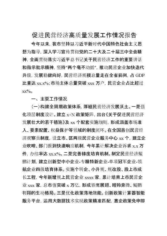 促进民营经济高质量发展工作情况报告 2025-07-22 Word模板 26 购买前,请一定要先点击这里看看,欢迎持续关注,精彩模板每天推送 预览结束,本文件为word文档,一共5页,共2172字,请购买后,下载后查看 购买前,请一定要先点击这里看看,欢迎持续关注,精彩模板每天推送 资源下载下载价格29 RMBVIP免费升级VIP点击检测网盘有效后购买有任何充值和下载问题请加微信:xuexixuexi66 0 总结汇报