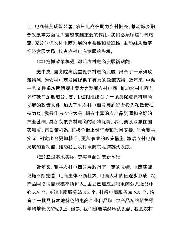 县委书记在农村电商发展工作推进会上的讲话 2025-07-28 Word模板 30 购买前,请一定要先点击这里看看,欢迎持续关注,精彩模板每天推送 预览结束,本文件为word文档,一共15页,共7490字,请购买后,下载后查看 购买前,请一定要先点击这里看看,欢迎持续关注,精彩模板每天推送 资源下载下载价格29 RMBVIP免费升级VIP点击检测网盘有效后购买有任何充值和下载问题请加微信:xuexixuexi66 0 演讲发言