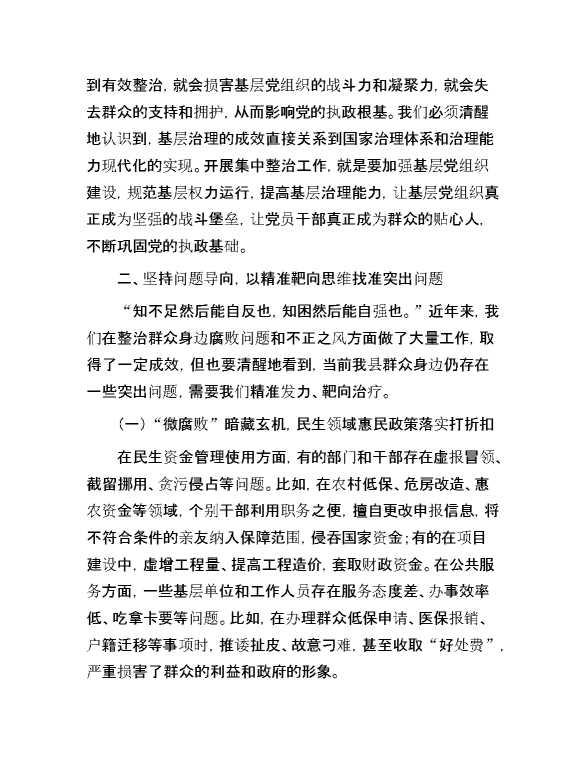 县委书记在群众身边腐败问题和不正之风集中整治工作推进会上的讲话 2025-07-28 Word模板 33 购买前,请一定要先点击这里看看,欢迎持续关注,精彩模板每天推送 预览结束,本文件为word文档,一共15页,共6893字,请购买后,下载后查看 购买前,请一定要先点击这里看看,欢迎持续关注,精彩模板每天推送 资源下载下载价格29 RMBVIP免费升级VIP点击检测网盘有效后购买有任何充值和下载问题请加微信:xuexixuexi66 0 演讲发言