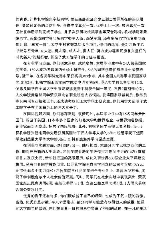 武汉工程科技学院2025年毕业典礼暨学位授予仪式校长讲话:传承校训逐梦远行 2025-07-28 Word模板 32 购买前,请一定要先点击这里看看,欢迎持续关注,精彩模板每天推送 预览结束,本文件为word文档,一共6页,共4212字,请购买后,下载后查看 购买前,请一定要先点击这里看看,欢迎持续关注,精彩模板每天推送 资源下载下载价格29 RMBVIP免费升级VIP点击检测网盘有效后购买有任何充值和下载问题请加微信:xuexixuexi66 0 演讲发言