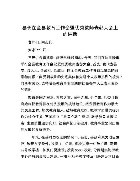 县长在全县教育工作会暨优秀教师表彰大会上的讲话 2023-09-23 Word模板 116 购买前,请一定要先点击这里看看,欢迎持续关注,精彩模板每天推送 预览结束,本文件为word文档,一共7页,共3475字,请购买后,下载后查看 购买前,请一定要先点击这里看看,欢迎持续关注,精彩模板每天推送 资源下载下载价格29 RMBVIP免费升级VIP点击检测网盘有效后购买有任何充值和下载问题请加微信:xuexixuexi66 0 演讲发言