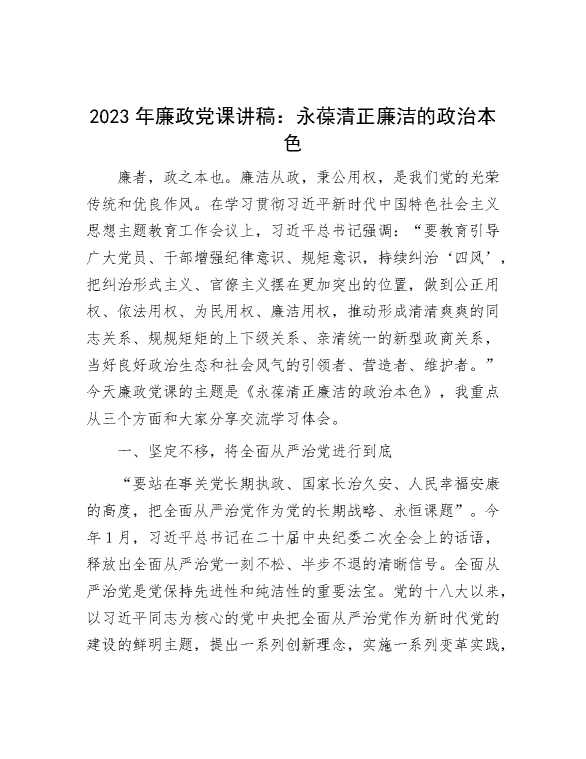 2023年廉政党课讲稿:永葆清正廉洁的政治本色 2023-11-27 Word模板 107 购买前,请一定要先点击这里看看,欢迎持续关注,精彩模板每天推送 预览结束,本文件为word文档,一共8页,共3833字,请购买后,下载后查看 购买前,请一定要先点击这里看看,欢迎持续关注,精彩模板每天推送 资源下载下载价格29 RMBVIP免费升级VIP点击检测网盘有效后购买有任何充值和下载问题请加微信:xuexixuexi66 0 党课及生活会