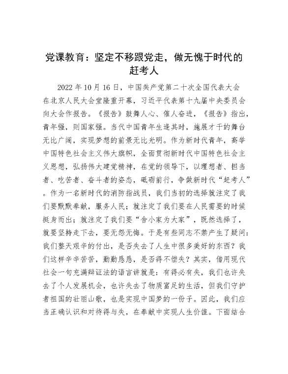 党课教育:坚定不移跟党走,做无愧于时代的赶考人 2023-11-27 Word模板 111 购买前,请一定要先点击这里看看,欢迎持续关注,精彩模板每天推送 预览结束,本文件为word文档,一共10页,共4668字,请购买后,下载后查看 购买前,请一定要先点击这里看看,欢迎持续关注,精彩模板每天推送 资源下载下载价格29 RMBVIP免费升级VIP点击检测网盘有效后购买有任何充值和下载问题请加微信:xuexixuexi66 0 党课及生活会