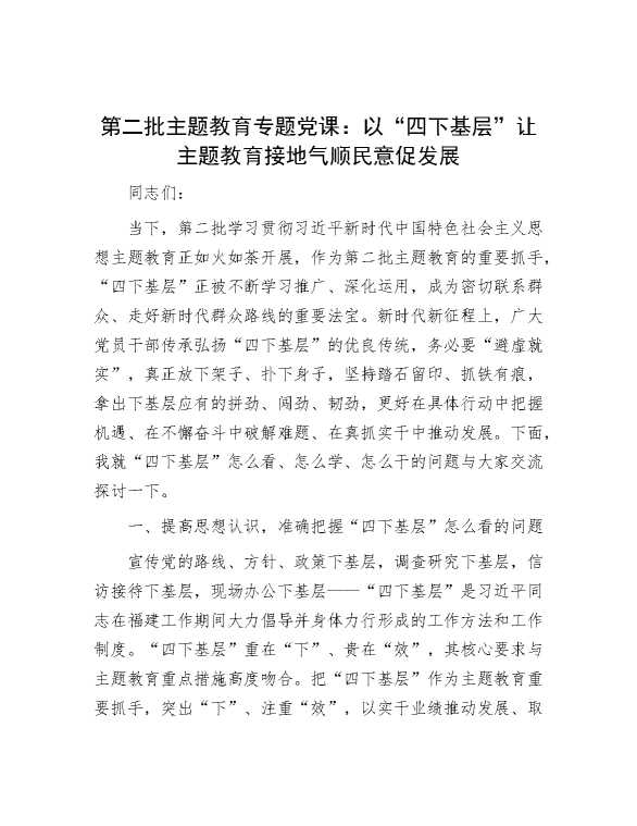 第二批主题教育专题党课:以“四下基层”让主题教育接地气顺民意促发展 2023-11-27 Word模板 115 购买前,请一定要先点击这里看看,欢迎持续关注,精彩模板每天推送 预览结束,本文件为word文档,一共11页,共4965字,请购买后,下载后查看 购买前,请一定要先点击这里看看,欢迎持续关注,精彩模板每天推送 资源下载下载价格29 RMBVIP免费升级VIP点击检测网盘有效后购买有任何充值和下载问题请加微信:xuexixuexi66 0 党课及生活会