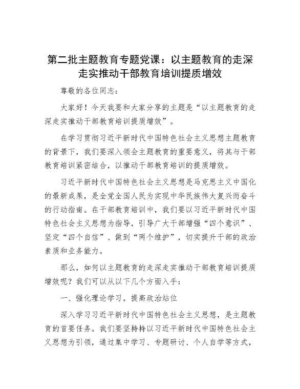 第二批主题教育专题党课:以主题教育的走深走实推动干部教育培训提质增效 2023-11-27 Word模板 121 购买前,请一定要先点击这里看看,欢迎持续关注,精彩模板每天推送 预览结束,本文件为word文档,一共4页,共1721字,请购买后,下载后查看 购买前,请一定要先点击这里看看,欢迎持续关注,精彩模板每天推送 资源下载下载价格29 RMBVIP免费升级VIP点击检测网盘有效后购买有任何充值和下载问题请加微信:xuexixuexi66 0 党课及生活会