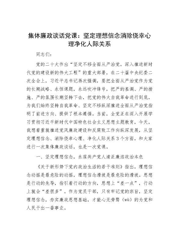 集体廉政谈话党课:坚定理想信念 消除侥幸心理 净化人际关系 2023-11-27 Word模板 123 购买前,请一定要先点击这里看看,欢迎持续关注,精彩模板每天推送 预览结束,本文件为word文档,一共12页,共5649字,请购买后,下载后查看 购买前,请一定要先点击这里看看,欢迎持续关注,精彩模板每天推送 资源下载下载价格29 RMBVIP免费升级VIP点击检测网盘有效后购买有任何充值和下载问题请加微信:xuexixuexi66 0 党课及生活会