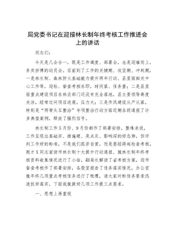 局党委书记在迎接林长制年终考核工作推进会上的讲话 2023-12-03 Word模板 104 购买前,请一定要先点击这里看看,欢迎持续关注,精彩模板每天推送 预览结束,本文件为word文档,一共7页,共2994字,请购买后,下载后查看 购买前,请一定要先点击这里看看,欢迎持续关注,精彩模板每天推送 资源下载下载价格29 RMBVIP免费升级VIP点击检测网盘有效后购买有任何充值和下载问题请加微信:xuexixuexi66 0 演讲发言