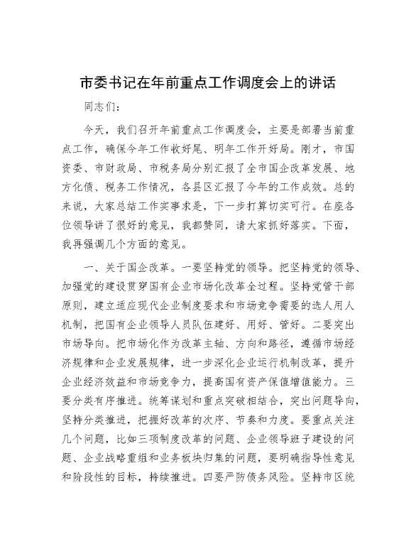 市委书记在年前重点工作调度会上的讲话 2023-12-03 Word模板 107 购买前,请一定要先点击这里看看,欢迎持续关注,精彩模板每天推送 预览结束,本文件为word文档,一共4页,共1768字,请购买后,下载后查看 购买前,请一定要先点击这里看看,欢迎持续关注,精彩模板每天推送 资源下载下载价格29 RMBVIP免费升级VIP点击检测网盘有效后购买有任何充值和下载问题请加微信:xuexixuexi66 0 演讲发言