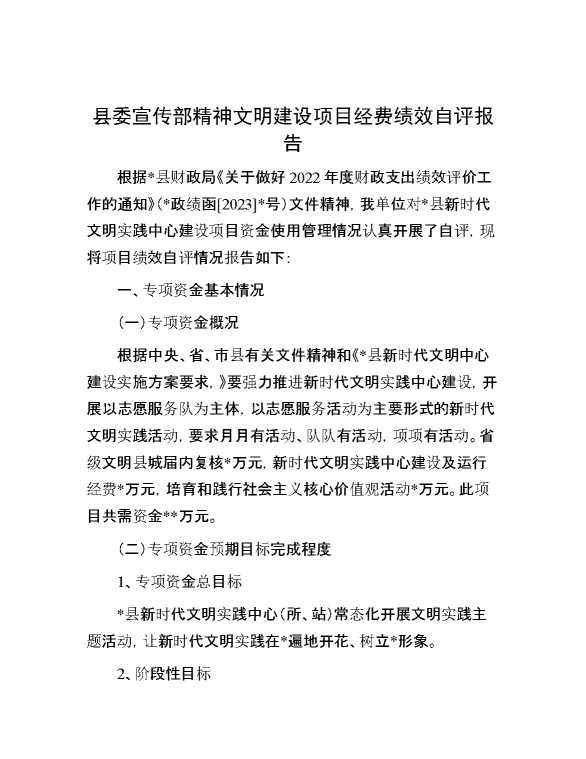 县委宣传部精神文明建设项目经费绩效自评报告 2023-12-07 Word模板 121 购买前,请一定要先点击这里看看,欢迎持续关注,精彩模板每天推送 预览结束,本文件为word文档,一共6页,共2197字,请购买后,下载后查看 购买前,请一定要先点击这里看看,欢迎持续关注,精彩模板每天推送 资源下载下载价格29 RMBVIP免费升级VIP点击检测网盘有效后购买有任何充值和下载问题请加微信:xuexixuexi66 0 总结汇报