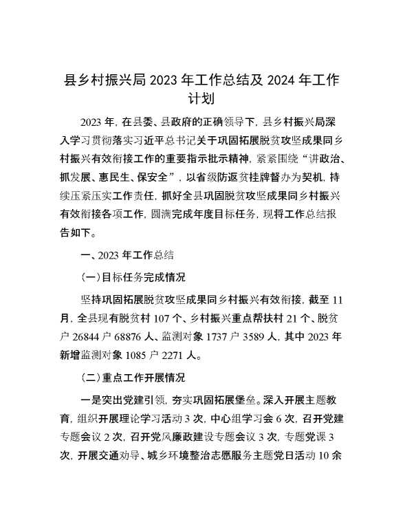 县乡村振兴局2023年工作总结及2024年工作计划 2023-12-07 Word模板 119 购买前,请一定要先点击这里看看,欢迎持续关注,精彩模板每天推送 预览结束,本文件为word文档,一共10页,共4374字,请购买后,下载后查看 购买前,请一定要先点击这里看看,欢迎持续关注,精彩模板每天推送 资源下载下载价格29 RMBVIP免费升级VIP点击检测网盘有效后购买有任何充值和下载问题请加微信:xuexixuexi66 0 总结汇报