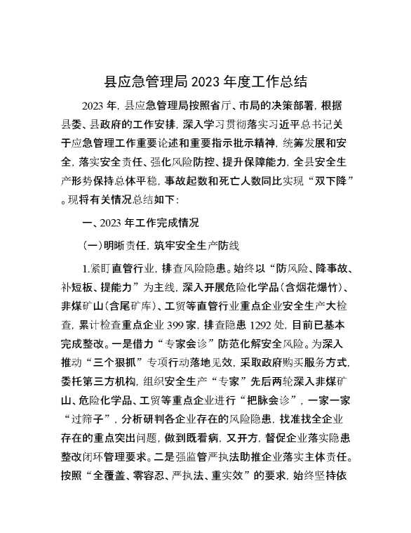县应急管理局2023年度工作总结 2023-12-07 Word模板 110 购买前,请一定要先点击这里看看,欢迎持续关注,精彩模板每天推送 预览结束,本文件为word文档,一共8页,共3681字,请购买后,下载后查看 购买前,请一定要先点击这里看看,欢迎持续关注,精彩模板每天推送 资源下载下载价格29 RMBVIP免费升级VIP点击检测网盘有效后购买有任何充值和下载问题请加微信:xuexixuexi66 0 总结汇报