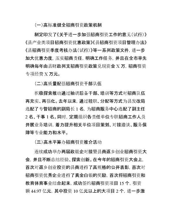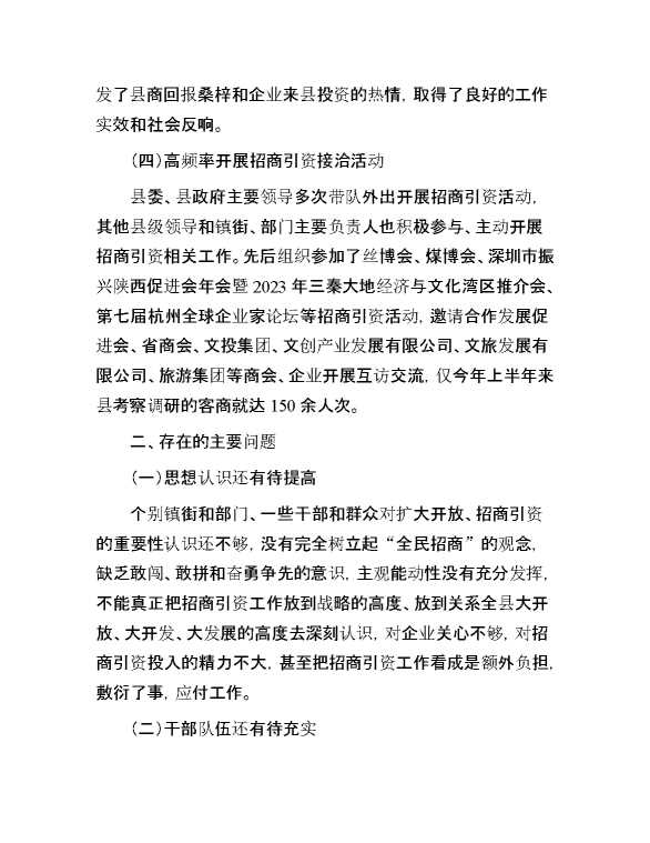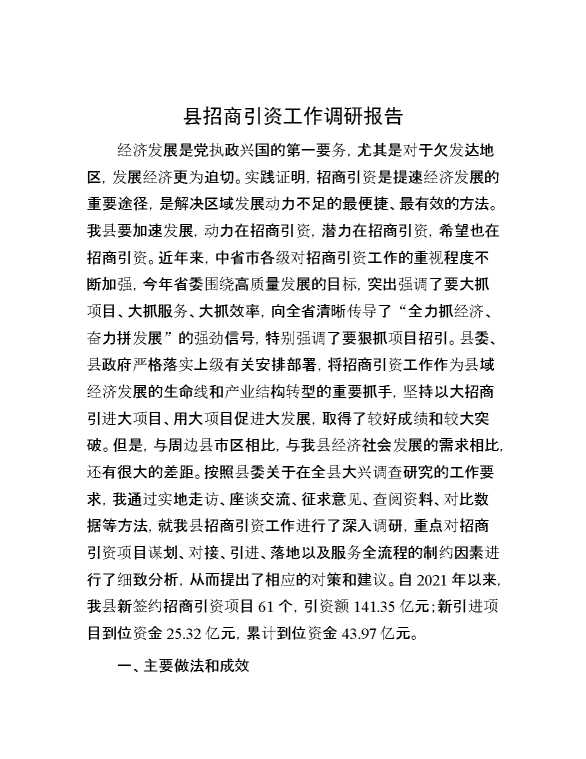 县招商引资工作调研报告 2023-12-07 Word模板 110 购买前,请一定要先点击这里看看,欢迎持续关注,精彩模板每天推送 预览结束,本文件为word文档,一共8页,共3850字,请购买后,下载后查看 购买前,请一定要先点击这里看看,欢迎持续关注,精彩模板每天推送 资源下载下载价格29 RMBVIP免费升级VIP点击检测网盘有效后购买有任何充值和下载问题请加微信:xuexixuexi66 0 总结汇报