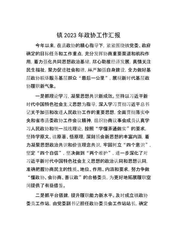 镇2023年政协工作汇报 2023-12-07 Word模板 110 购买前,请一定要先点击这里看看,欢迎持续关注,精彩模板每天推送 预览结束,本文件为word文档,一共2页,共974字,请购买后,下载后查看 购买前,请一定要先点击这里看看,欢迎持续关注,精彩模板每天推送 资源下载下载价格29 RMBVIP免费升级VIP点击检测网盘有效后购买有任何充值和下载问题请加微信:xuexixuexi66 0 总结汇报