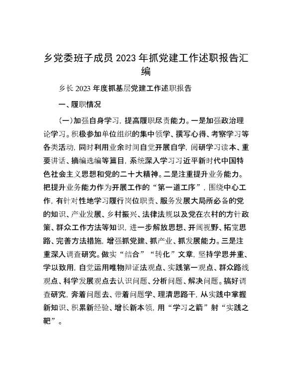 乡党委班子成员2023年抓党建工作述职报告汇编 2023-12-16 Word模板 123 购买前,请一定要先点击这里看看,欢迎持续关注,精彩模板每天推送 预览结束,本文件为word文档,一共26页,共12882字,请购买后,下载后查看 购买前,请一定要先点击这里看看,欢迎持续关注,精彩模板每天推送 资源下载下载价格29 RMBVIP免费升级VIP点击检测网盘有效后购买有任何充值和下载问题请加微信:xuexixuexi66 0 总结汇报
