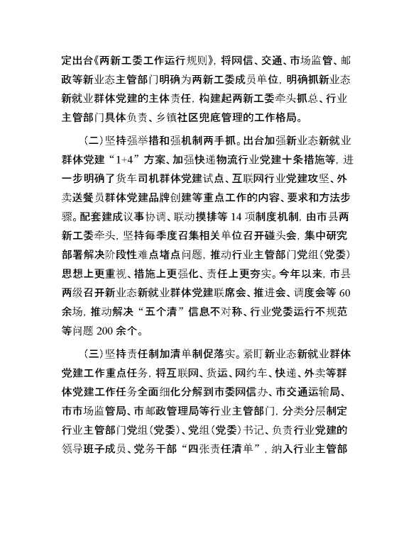 市委书记在省新就业群体党建工作座谈会上的汇报发言 2023-12-16 Word模板 108 购买前,请一定要先点击这里看看,欢迎持续关注,精彩模板每天推送 预览结束,本文件为word文档,一共8页,共3839字,请购买后,下载后查看 购买前,请一定要先点击这里看看,欢迎持续关注,精彩模板每天推送 资源下载下载价格29 RMBVIP免费升级VIP点击检测网盘有效后购买有任何充值和下载问题请加微信:xuexixuexi66 0 演讲发言