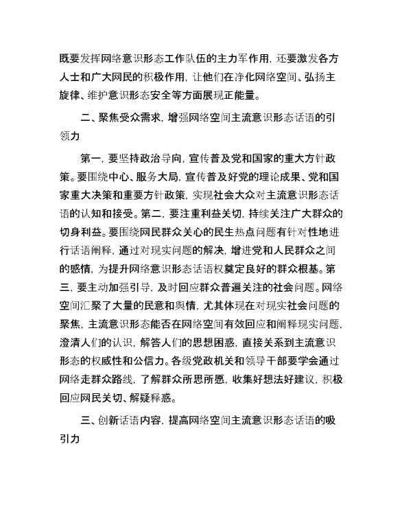 网信办主任中心组研讨发言:牢牢掌握网络意识形态话语权 2023-12-16 Word模板 116 购买前,请一定要先点击这里看看,欢迎持续关注,精彩模板每天推送 预览结束,本文件为word文档,一共4页,共1725字,请购买后,下载后查看 购买前,请一定要先点击这里看看,欢迎持续关注,精彩模板每天推送 资源下载下载价格29 RMBVIP免费升级VIP点击检测网盘有效后购买有任何充值和下载问题请加微信:xuexixuexi66 0 演讲发言