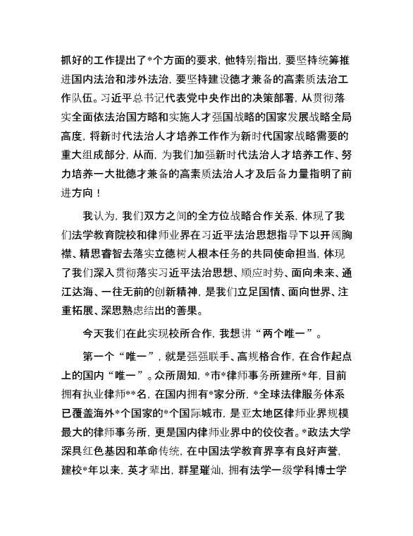 校长在政法大学与律师事务所战略合作框架协议签字仪式上的发言(高校) 2023-12-16 Word模板 104 购买前,请一定要先点击这里看看,欢迎持续关注,精彩模板每天推送 预览结束,本文件为word文档,一共5页,共2023字,请购买后,下载后查看 购买前,请一定要先点击这里看看,欢迎持续关注,精彩模板每天推送 资源下载下载价格29 RMBVIP免费升级VIP点击检测网盘有效后购买有任何充值和下载问题请加微信:xuexixuexi66 0 演讲发言