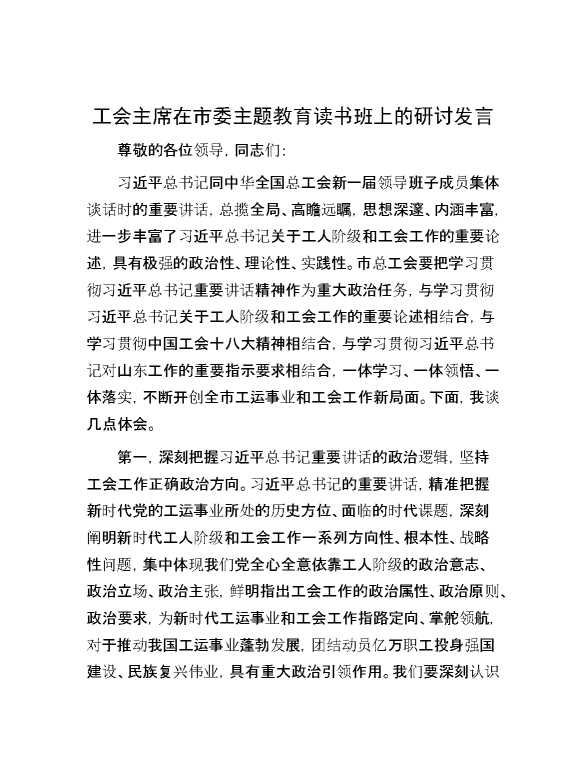 工会主席在市委主题教育读书班上的研讨发言 2023-12-16 Word模板 105 购买前,请一定要先点击这里看看,欢迎持续关注,精彩模板每天推送 预览结束,本文件为word文档,一共4页,共2037字,请购买后,下载后查看 购买前,请一定要先点击这里看看,欢迎持续关注,精彩模板每天推送 资源下载下载价格29 RMBVIP免费升级VIP点击检测网盘有效后购买有任何充值和下载问题请加微信:xuexixuexi66 0 党课及生活会