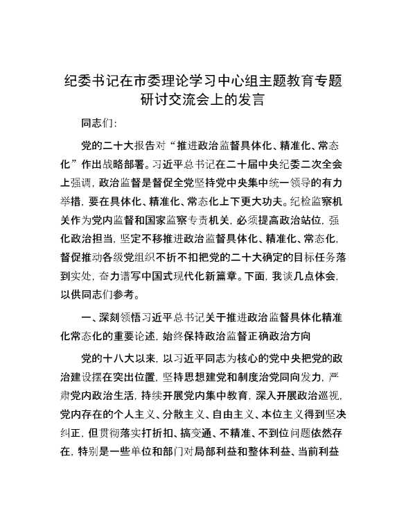 纪委书记在市委理论学习中心组主题教育专题研讨交流会上的发言 2023-12-16 Word模板 119 购买前,请一定要先点击这里看看,欢迎持续关注,精彩模板每天推送 预览结束,本文件为word文档,一共7页,共3084字,请购买后,下载后查看 购买前,请一定要先点击这里看看,欢迎持续关注,精彩模板每天推送 资源下载下载价格29 RMBVIP免费升级VIP点击检测网盘有效后购买有任何充值和下载问题请加微信:xuexixuexi66 0 党课及生活会
