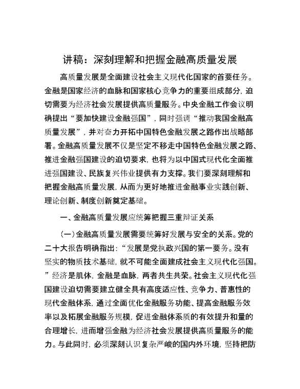 讲稿:深刻理解和把握金融高质量发展 2023-12-16 Word模板 119 购买前,请一定要先点击这里看看,欢迎持续关注,精彩模板每天推送 预览结束,本文件为word文档,一共8页,共3774字,请购买后,下载后查看 购买前,请一定要先点击这里看看,欢迎持续关注,精彩模板每天推送 资源下载下载价格29 RMBVIP免费升级VIP点击检测网盘有效后购买有任何充值和下载问题请加微信:xuexixuexi66 0 党课及生活会