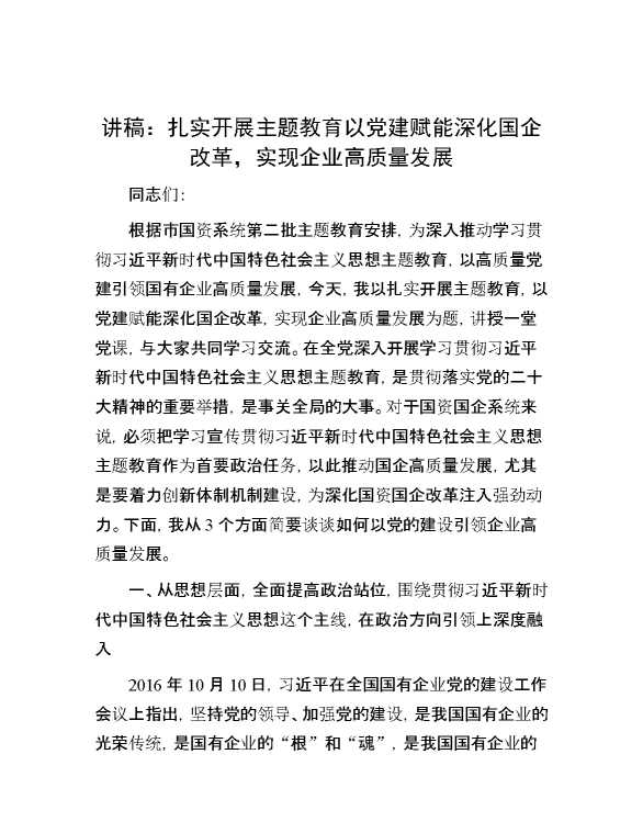 讲稿:扎实开展主题教育 以党建赋能深化国企改革,实现企业高质量发展 2023-12-16 Word模板 133 购买前,请一定要先点击这里看看,欢迎持续关注,精彩模板每天推送 预览结束,本文件为word文档,一共11页,共5572字,请购买后,下载后查看 购买前,请一定要先点击这里看看,欢迎持续关注,精彩模板每天推送 资源下载下载价格29 RMBVIP免费升级VIP点击检测网盘有效后购买有任何充值和下载问题请加微信:xuexixuexi66 0 党课及生活会