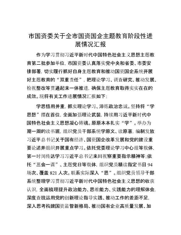 市国资委关于全市国资国企主题教育阶段性进展情况汇报 2023-12-16 Word模板 121 购买前,请一定要先点击这里看看,欢迎持续关注,精彩模板每天推送 预览结束,本文件为word文档,一共7页,共3289字,请购买后,下载后查看 购买前,请一定要先点击这里看看,欢迎持续关注,精彩模板每天推送 资源下载下载价格29 RMBVIP免费升级VIP点击检测网盘有效后购买有任何充值和下载问题请加微信:xuexixuexi66 0 党课及生活会